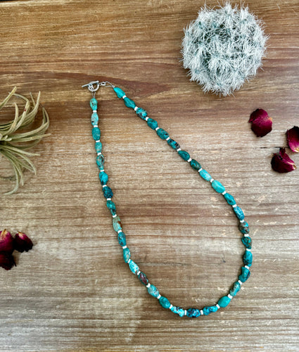 18 inch long blue turquoise nuggets necklace